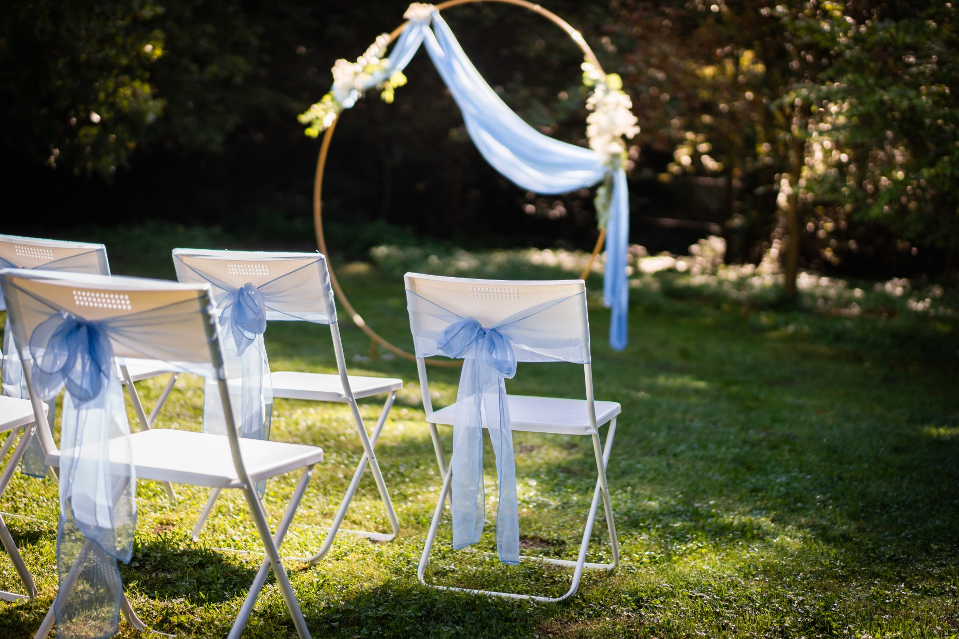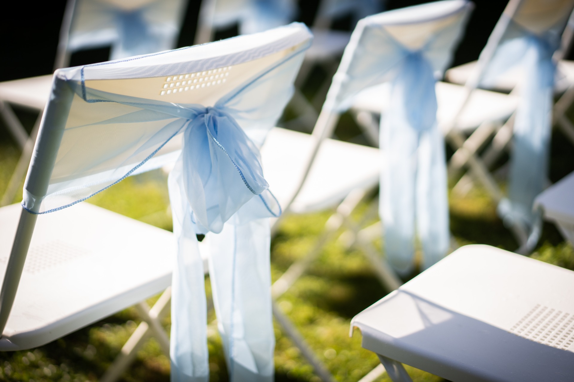 Baby blue mašle na židle